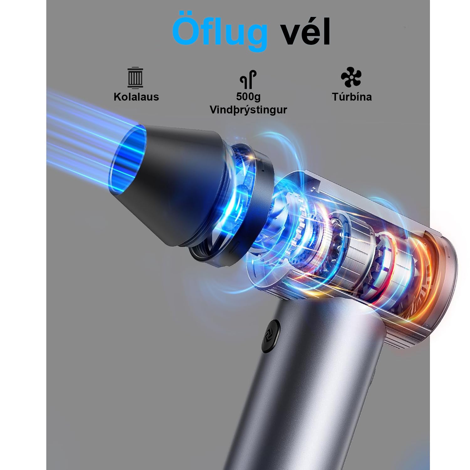 Fullkominn fyrir heimili, skrifstofur og verkstæði – með öflugri 90000 RPM mótor og 500g vindþrýsting.
