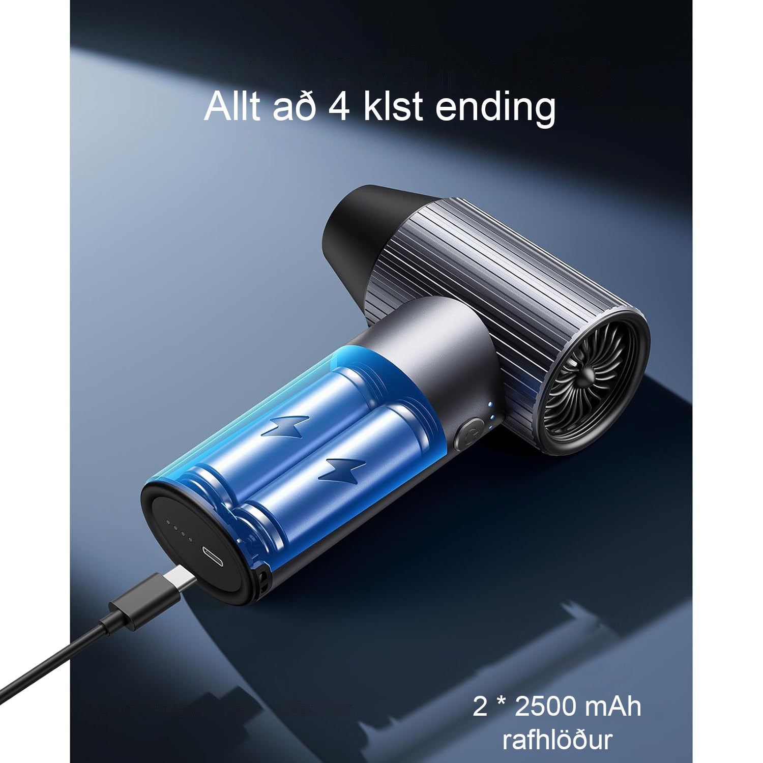 🔋 Löng rafhlöðuending – Með 5000mAh rafhlöðu geturðu notað blásarann í allt að 4 klst í fyrsta gír!